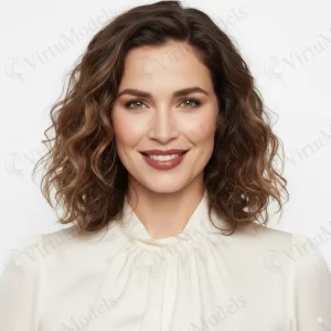 Una modelo virtual es una modelo creada mediante inteligencia artificial. Es indistinguible de una persona real y podemos definir todas sus características según nuestras preferencias (color de pelo, ojos o piel, peinado, cara, altura, tipo de cuerpo, etc.)